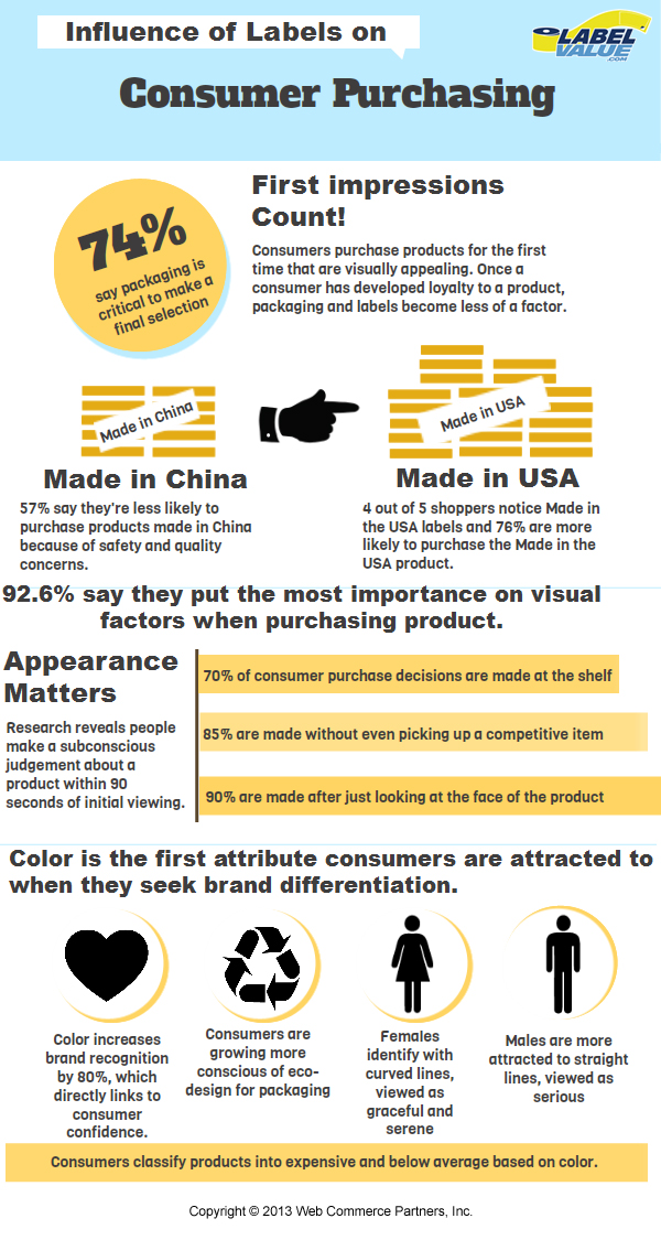 Μόλις οι καταναλωτές αναπτύξουν εμπιστοσύνη σε ένα προϊόν, η συσκευασία και οι ετικέτες είναι πλέον μικρότερης σημασίας. Επιπλέον, έρευνες αποκαλύπτουν ότι οι καταναλωτές κρίνουν υποσυνείδητα ένα προϊόν μέσα σε 90 δευτερόλεπτα από την αρχική οπτική επαφή. Μάλιστα, 70% των αποφάσεων για την αγορά ενός προϊόντος λαμβάνονται στα ράφια των καταστημάτων, ενώ το 85% των αποφάσεων λαμβάνονται χωρίς καν οι καταναλωτές να σηκώσουν κάποιο άλλο ανταγωνιστικό προϊόν από το ράφι. Τέλος, 90% των αποφάσεων λαμβάνονται αμέσως μετά την οπτική επαφή με το προϊόν.