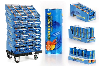 Μία ακόμη καινοτομία συνιστά η δευτερογενής συσκευασία που αποτελείται στη βάση της από κυματοειδές χαρτί το οποίο περιβάλλεται από μια ταινία από πολυπροπυλένιο, ώστε να σχηματίζει ένα ορθογώνιο καλούπι για την τοποθέτηση δοχείων ποτών, κονσερβών ή βάζων σε κάθετη αλλά και σε οριζόντια μορφή. Αυτή καλύπτεται από πάνω από ένα χάρτινο καπάκι, διευκολύνοντας τόσο την προβολή των προϊόντων όσο και την αντικατάστασή τους, καθώς αυτά ολισθαίνουν για να τοποθετηθούν ή να αφαιρεθούν από τη συσκευασία. Ακόμη είναι ελαφριά –ζυγίζει λιγότερο από 4 κιλά-, φθηνή -λόγω της ελάχιστης χρήσης υλικών-και μπορεί είτε να τοποθετηθεί στο ράφι, είτε να πωληθεί απευθείας από τροχοφόρες παλέτες που έχουν χωρητικότητα 12 τέτοιων δίσκων προβολής. Λόγω της τελευταίας ιδιότητάς της είναι ιδιαίτερα εύχρηστη για προϊόντα που είναι σε προσφορά ή για αυτά που έχουν υψηλό κύκλο εργασιών.